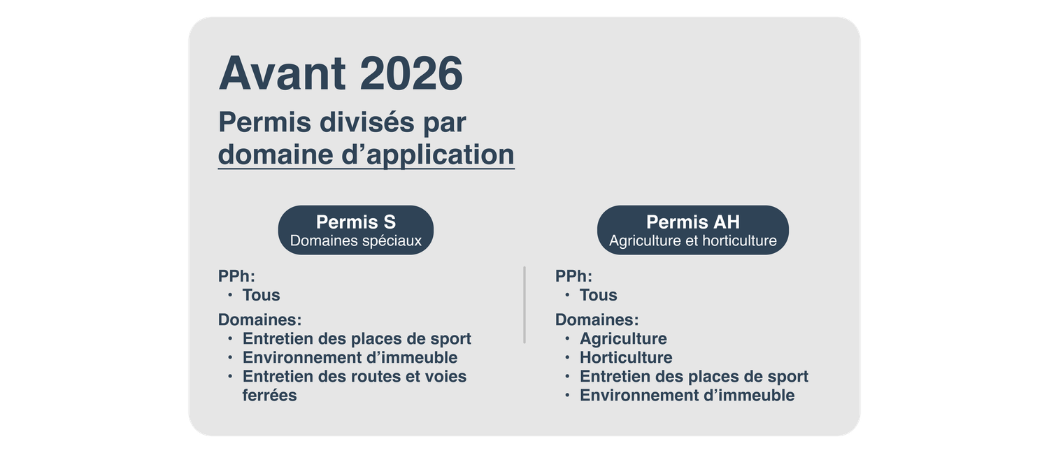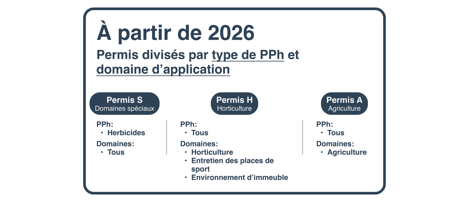 En 2026, il y aura quatre permis différents : un spécifique à l’agriculture, un à l’horticulture et un pour les traitements en forêt. Un quatrième permis est disponible pour les titulaires qui n’utilisent que des herbicides, indépendamment du domaine.