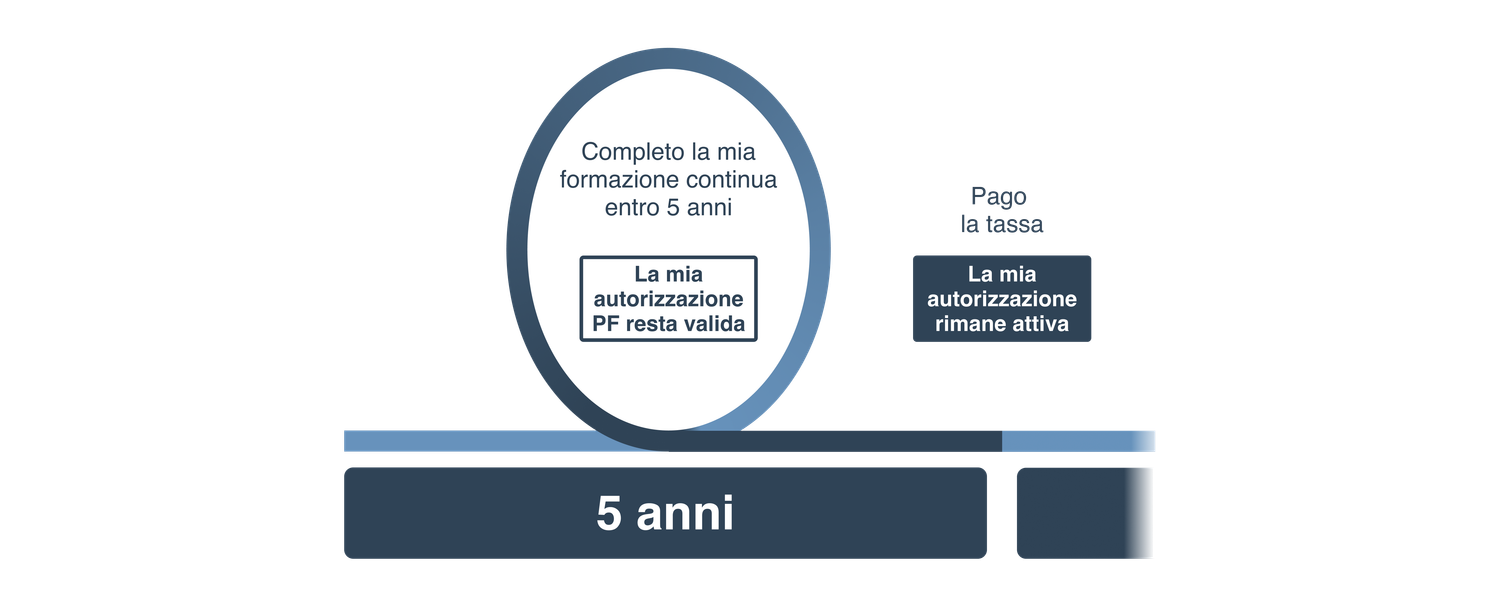 L’autorizzazione PF è valida per 5 anni e viene rinnovata per ulteriori 5 anni a partire da quel momento.