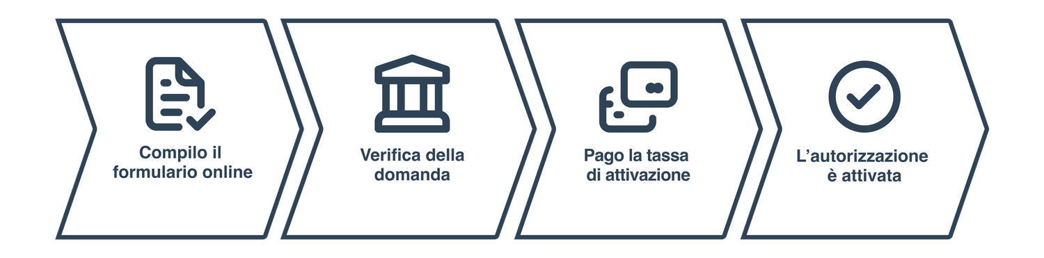 - Dopo la convalida dei documenti (che richiede all’incirca un mese) ricevo una lettera di conferma che mi invita a pagare la somma di CHF 50.- per il rilascio dell’autorizzazione. È possibile utilizzare tutti i comuni mezzi di pagamento (TWINT, carta di credito ecc.).