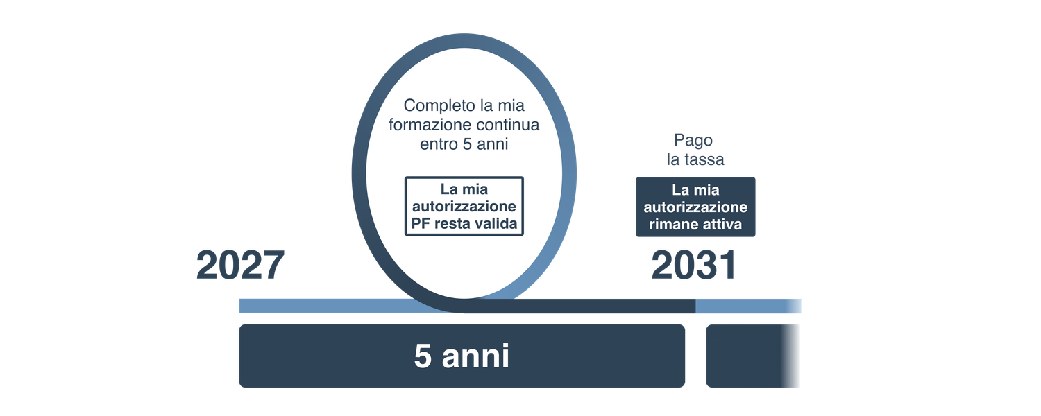 - Tra il 3° gennaio e il 30 giugno 2026, compilo il modulo disponibile presso il Registro Autorizzazioni PF e carico i documenti richiesti (vecchia autorizzazione o il titolo di formazione riconosciuto).